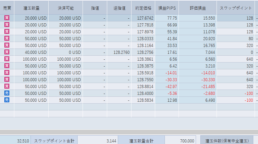 ちなみに前日の決済は損切り分のみ、-4千円程度でした。