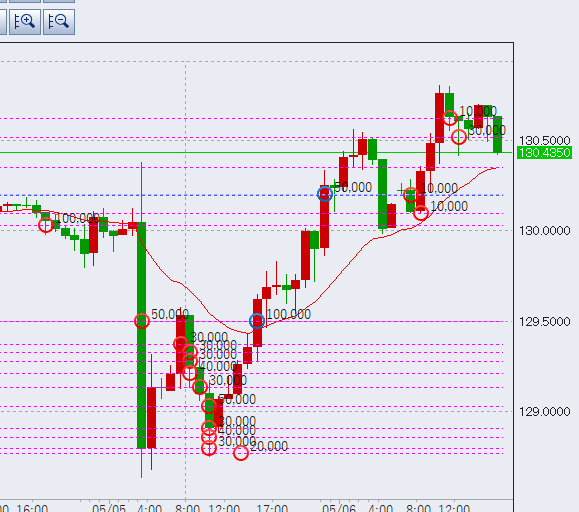 2022年05月06日ドル円相場は上昇スタート。先日下落で20万円ほどの損切りを出してしまったものの、朝時点で含み益が35万円程度出ていました。