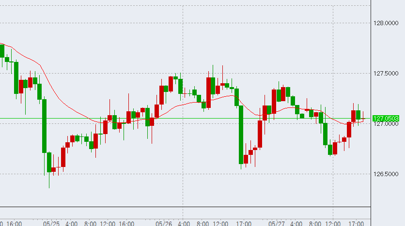本日もレンジ相場からのスタートとなりました。前日は126.6付近まで下げたものの安値は更新せずでしたが、高値(127.4)も上抜けることができないというドルの弱気が続いています。