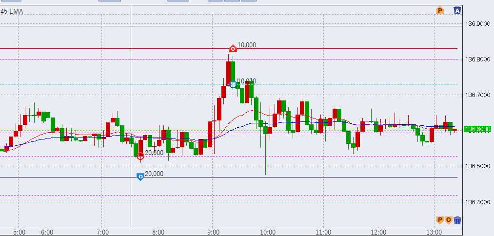 ドル円は前日、今年の最高値137円を付けました。相場はその後緩やかに下落し、朝時点で136.5辺りとなっています。損益は朝時点で+25万円程度。