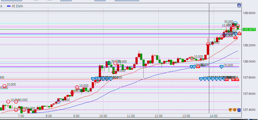 前日アメリカ時間から上昇が続いており、本日は10時時点で138を記録。本日どこまで上昇するかが焦点です。