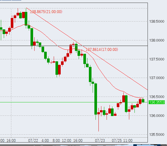 画像は16時過ぎのものです。伸びや緩やかですが、徐々に底が形成されつつあります。しかし上値が移動平均線に触れているため、下落の可能性もあり、慎重に相場の流れを見ていきたいと思います。