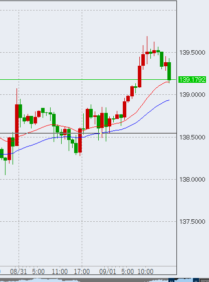 ドル円へ前日夜に高値を更新、朝時点で139.1を付け、日本時間入り後も上昇を続けており、一時最高値139.4を抜きました。このため、本日も上昇継続の可能性が高いでしょう。