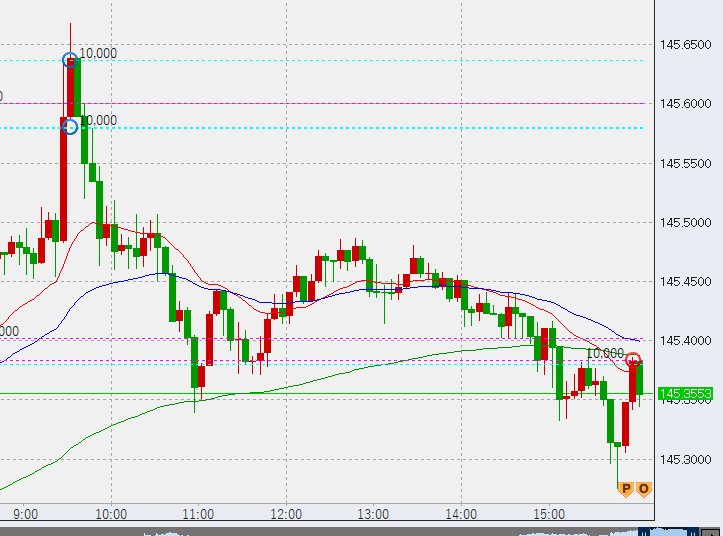 本日は日本時間入り後すぐに高値145.65を付けたものの、その後は低調な流れとなり、16時時点で145.35付近となっています。