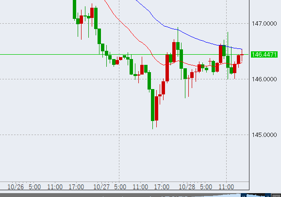 下降の流れにあったドル円は前日から反発の兆しを見せていますが、前日夜からは米国債利回り低下とともに押し戻される状況となっており、本日朝時点で146.2付近となっています。