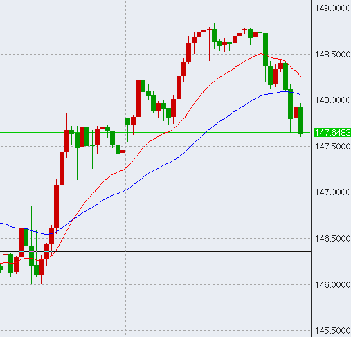 本日は日本時間入りから低調な値動き。17時過ぎには146.5を付け、前日の日足安値を下回りました。FOMCを控え神経質な動きとなっています。