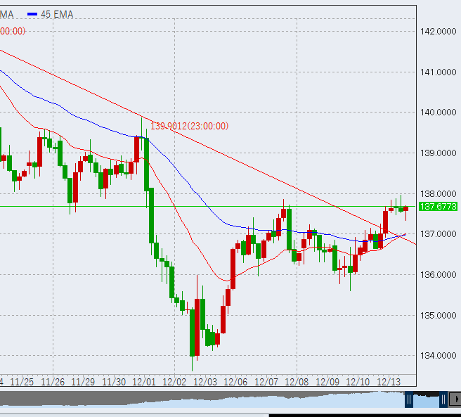 前日ドル円は堅調に上昇しましたが、アメリカ時間も引き続き上昇し137.8を付けました。本日朝時点では137.6付近となっており、引き続き上昇するかに注目です。