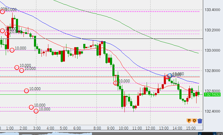 本日日本時間は下げで始まり、一時132.4まで下落。続くヨーロッパ勢がこの流れを引き継ぐか、反発するかに注目です。
