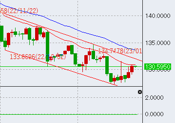 もし反発して前日高値を抜くようであれば、次は先週高値である131.5を目指すでしょう。