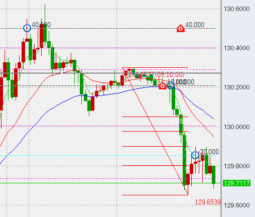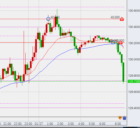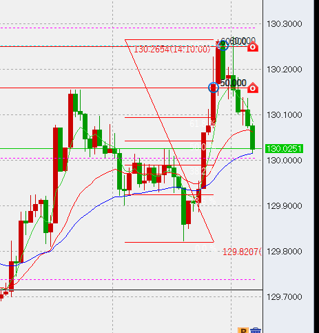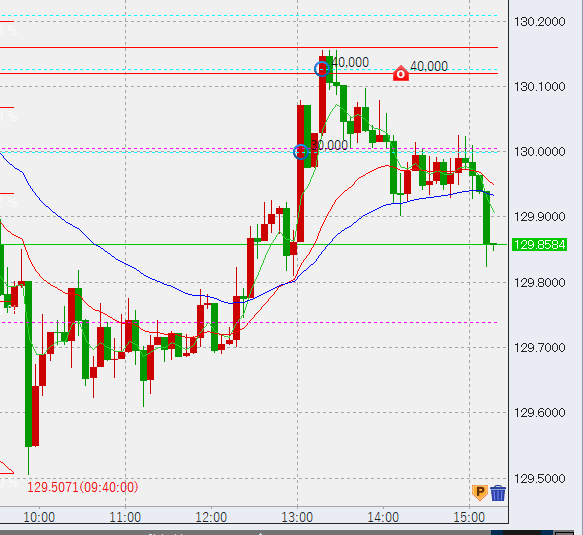 ポジションは昨日130.5に4万の指値売りを入れ、これがうまく約定。本日は下げそうですのでそれに加え、うまい具合に高値ができればそこでも数万程度売ろうと考えています。