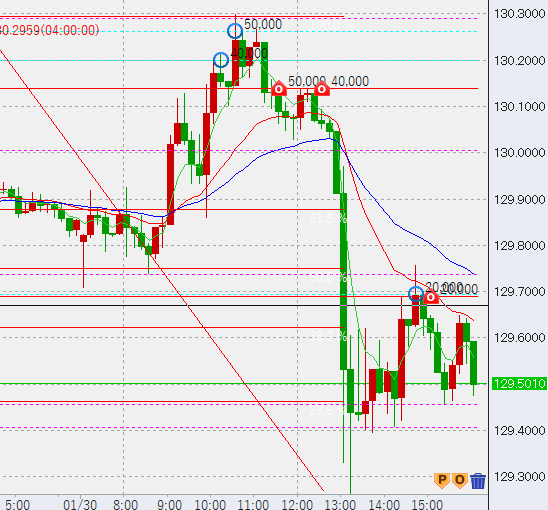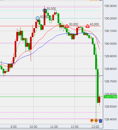 さらに半値戻しを狙い、2万の売りを追加投入。このまま129円にぶつかると、さらに1円程下げる可能性がありますので、決済は高値とします。