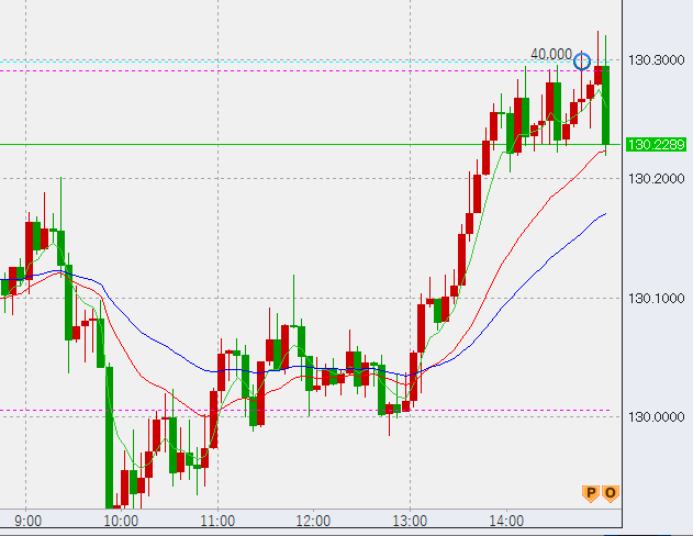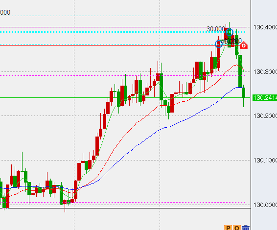 さらに上げてきたのでトップで+3万売り。損切りは出ましたが繰り上げ方を用いているので-100円程度。これだとちょっと下げただけで4-5万すぐいきますが、我慢我慢(苦笑)。