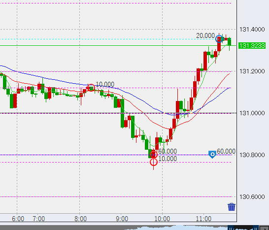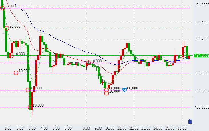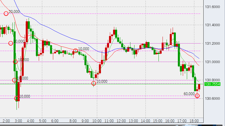イギリス時間さらに下げ、130.6付近で6万買いです。今後の動きが楽しみです。