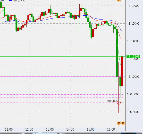 なお短期買いラインについては、4時間足上昇幅に対する50%ラインである、131-131.2円程度まで下げれば買いと踏んでいます。