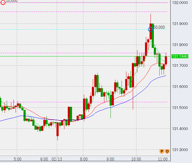 11時、さらに上昇。多少の損切りを出しながら高値に5万売り。午前中に出来た高値(131.94)が本日の高値となる可能性があるため、この売りポジションは堅持です。もしさらに高値を更新するような場合は、やはり繰り上げ法にて売りを重ねていきます。