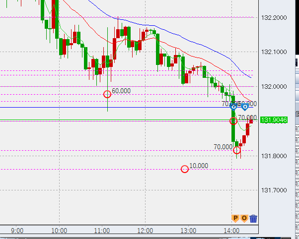 午後2時過ぎ、結局131.8まで下落し7万底買い。まあ昨日しっかりと買っておけばこんな大変なことやらなくても済んだんですが..。ここまでくると131.7くらいまでは下落しておかしくないです。