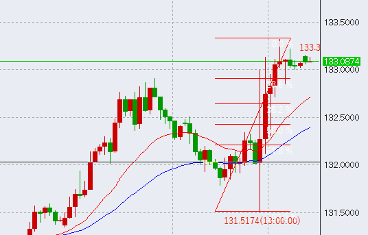 しかし、一旦下落し、半値戻し(132.5)程度してから再度上昇するという可能性もありますので、この二つの可能性を考慮しつつ本日のポジション取りを考える必要があります。いずれにしても、現在はドルの上昇意欲が強いことから、下がれば上がる相場ですので、底での買い入れは必須となります。