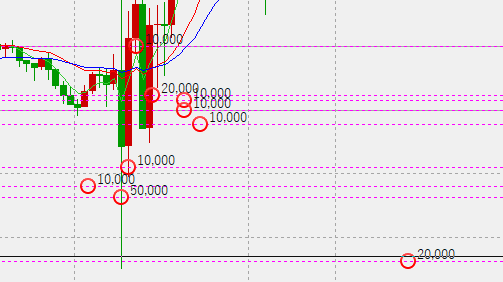 ヒゲ部分の5と1が昨日の6万買いです。他のは長期買いですが、ごちゃごちゃと沢山買ってますね。