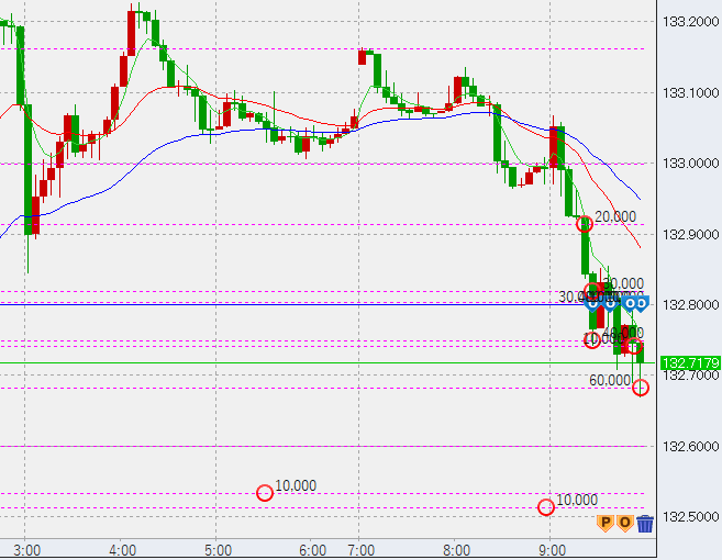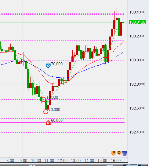このため、本日も繰り上げ法にて短期買いを行い、最大限に利益を伸ばしていきたいと思います。また売りについては、133.5以上を付けるようであれば、停滞した高値で5万程度を入れていきます。