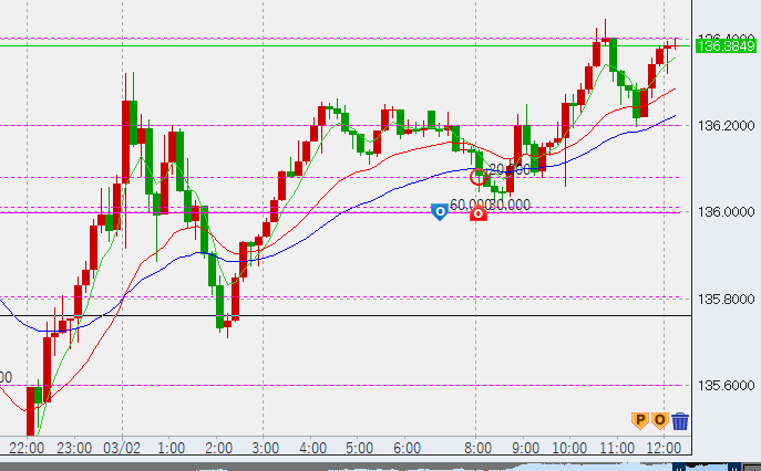 12時過ぎ135.4付近。高値136.5を付ければもう一伸びしそうです。