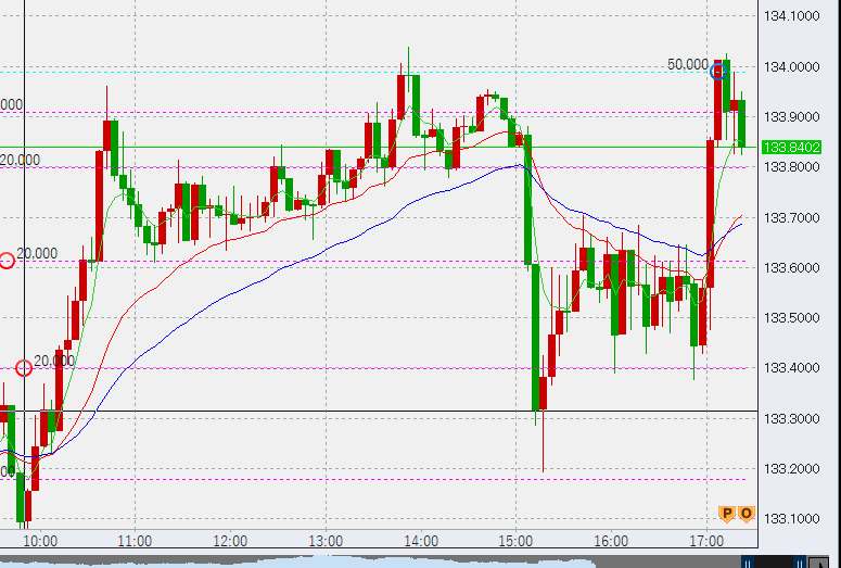 17時過ぎ。なかなか激しい値動き。短期売りは短期買いとともにすべて決済し、現在5万売りのみ。