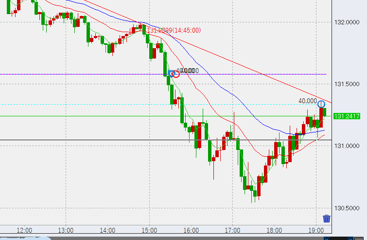 13時過ぎ131.9付近まで低下し底で5万買い。午前中の6万売りは既に3万円ほどの利益となっていますが、これは高値決済とします。