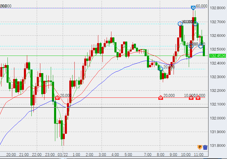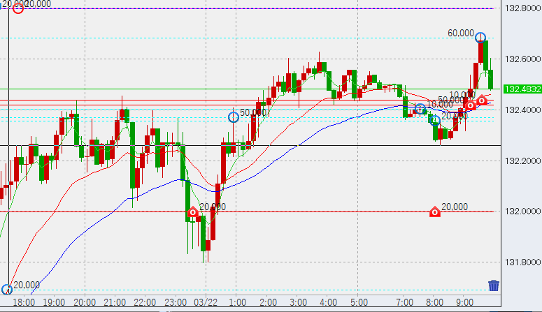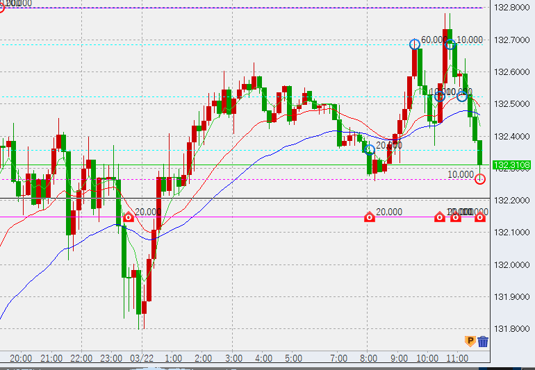こんにちは真開燦です!前日ドル円は金融不安やや解消の動きから上昇、今週高値となる132.5付近まで回復しました。本日朝時点では132.4円付近となっており、高値からの反落警戒ポイントです。