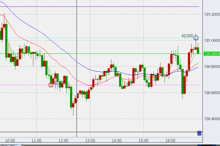 17時過ぎ131円付近で4万売り。再び下げやすい時間帯です。