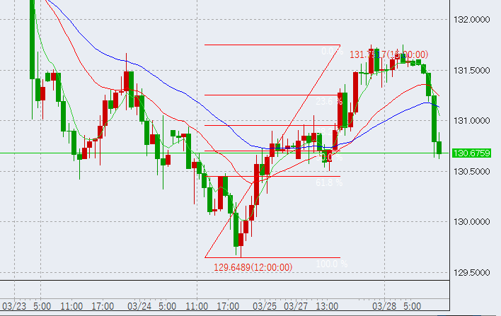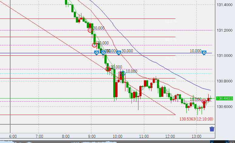 本日は早朝から一気に1円程度下落。10時半の時点で安値130.63を付けています。