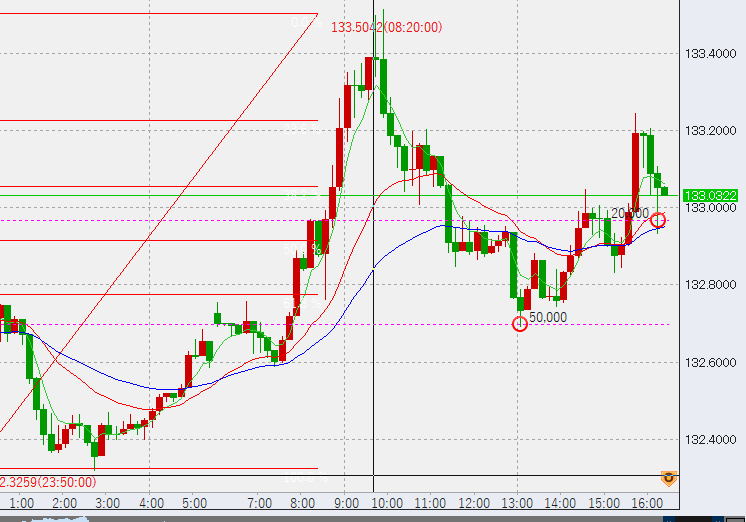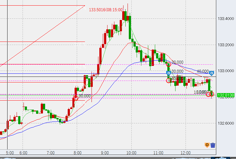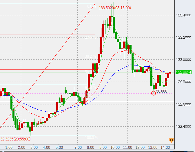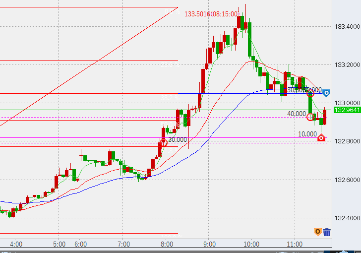 13時頃132.8付近まで下落。底で5万買い。