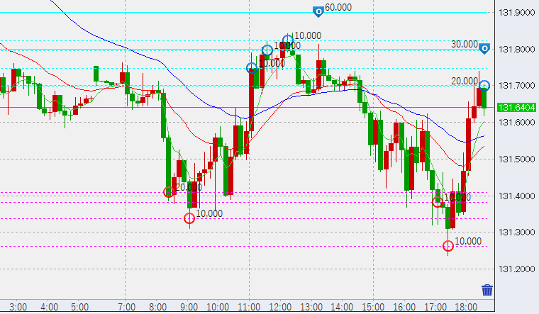 18時過ぎ高値131.7で2万売り。今日の投稿はここまでと致します。