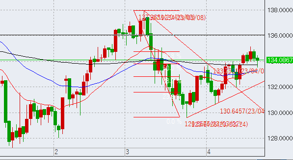 買いの決済ラインは原則1時間足安値としています。ただ現状では一度安値を割っているため、週明け新しくできた安値に決済ラインを設定することになります。ただし、もし安値が出来ずにずるずると下がってきた場合に備え、133.85を最低ラインとします。