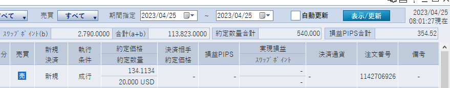 2023年04月25日FXドル円相場取引解説~米国債利回り低下し下落相場入りか!?