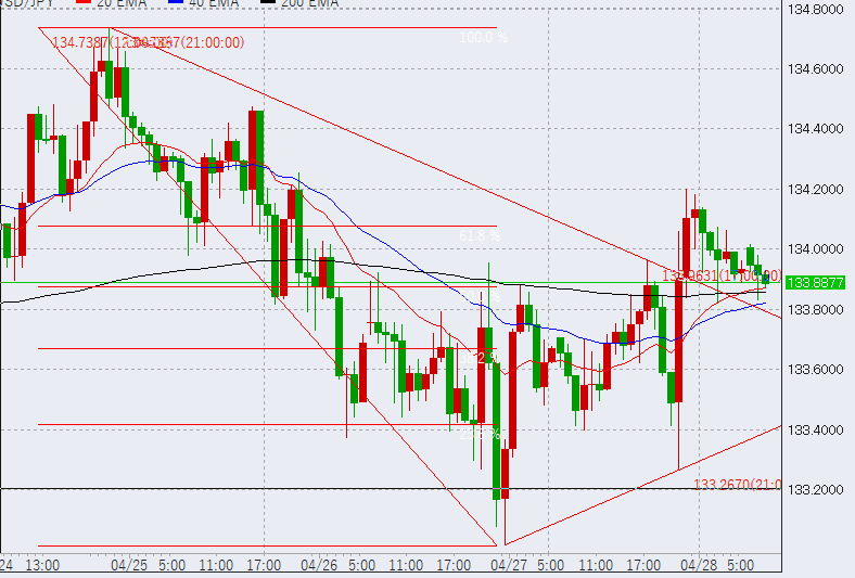 こんにちは真開燦です!前日は米GDPは予想より低い結果でしたが、GDP価格指数やコアPCEが予想より高い結果となり、ドル上昇の流れとなりました。その結果はドル円は高値134.2付近まで上昇、本日朝時点では133.9円付近となっています。