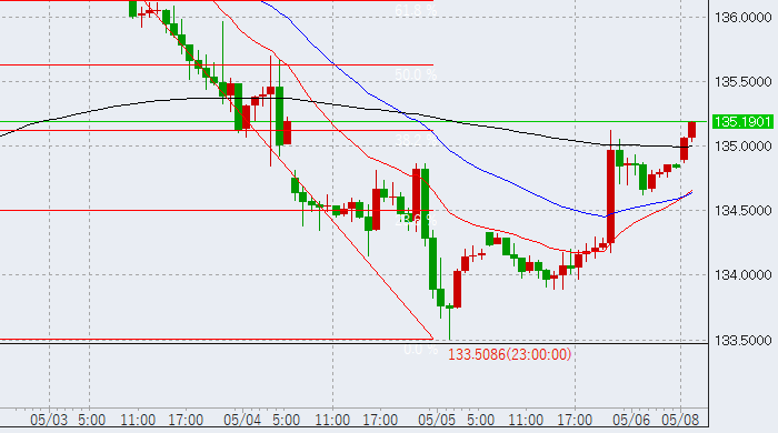 本日は1時間足がどこまで伸びるかに注目です。現状では、先週下落幅の40%程度まで盛り返していますが、50%程度までの反発が有力と見ています。これは大体135.6円付近です。