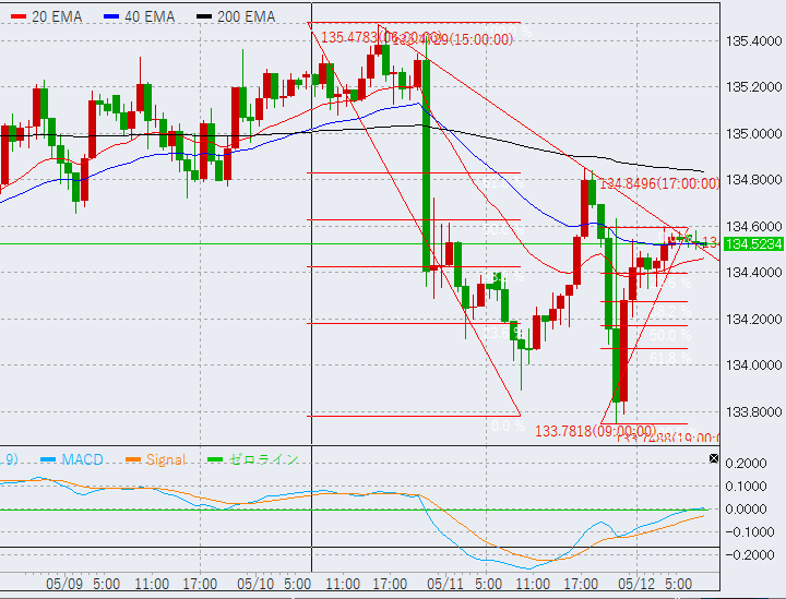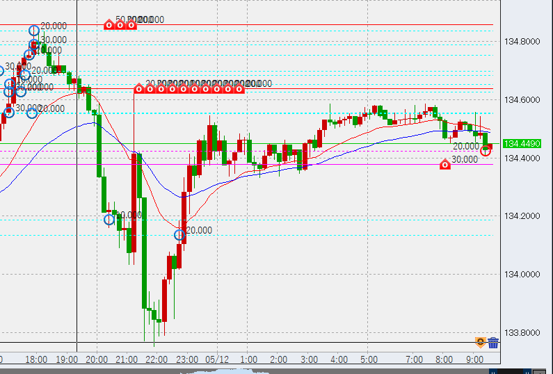 こんにちは真開燦です!前日は米PPI弱くドル円再び下落。しかし下げ幅は小さく、その後大きめの反発をしたまま本日朝を迎えています。朝時点で134.5円付近。