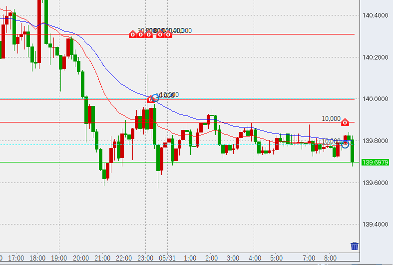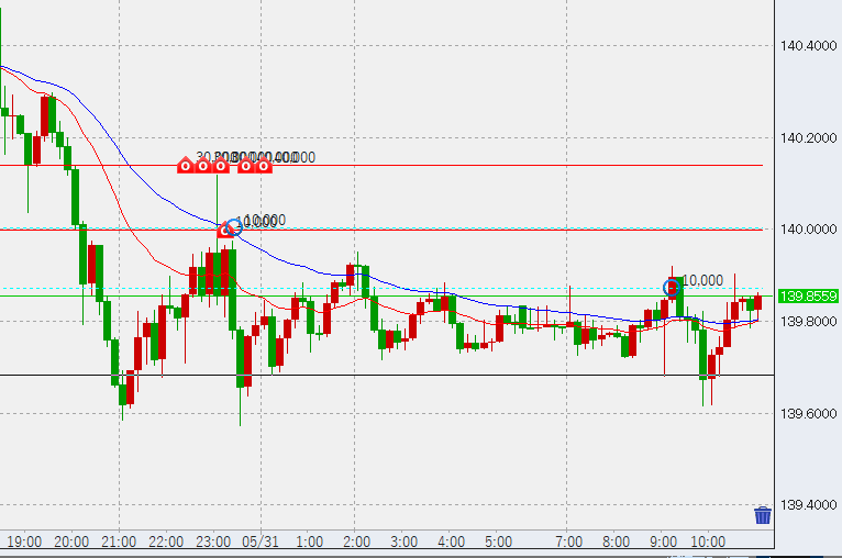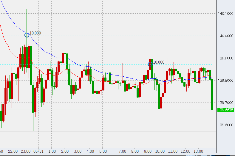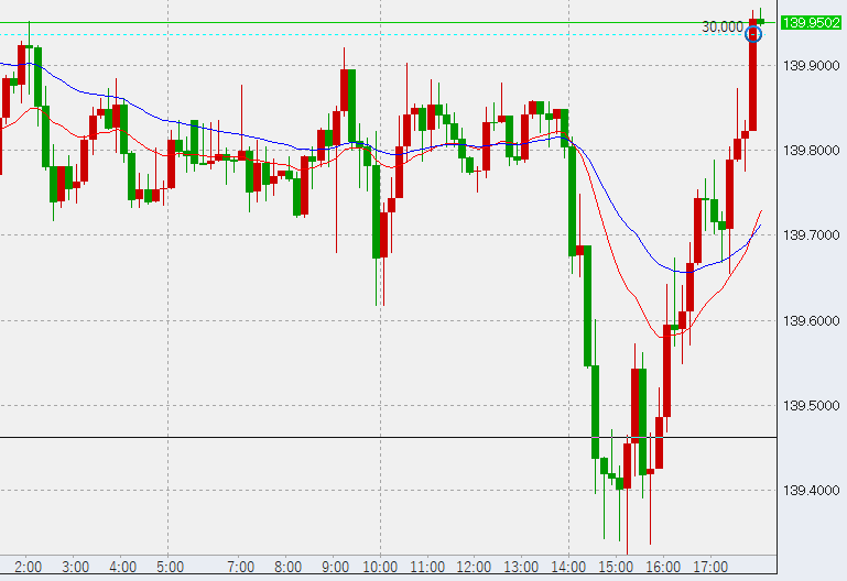 10時過ぎさらに下落するも139.6には届かず底堅い。