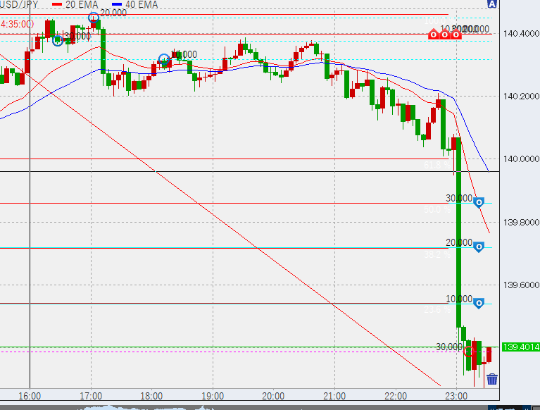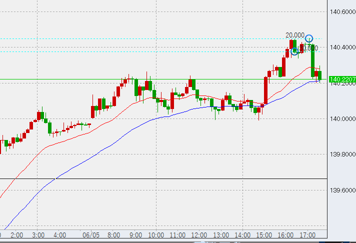 10時過ぎ若干の折れ。まずは23.6%ライン(139.9)を試すでしょうか。