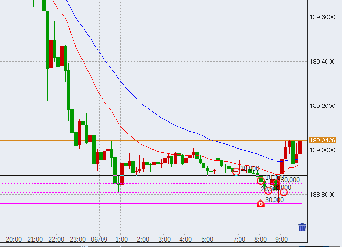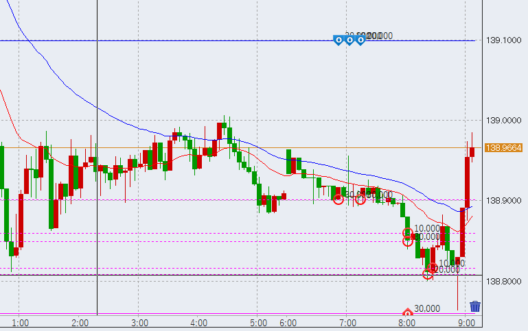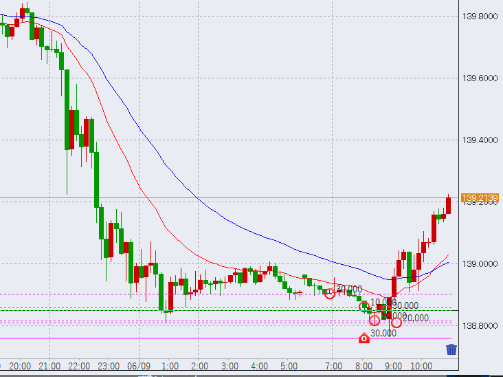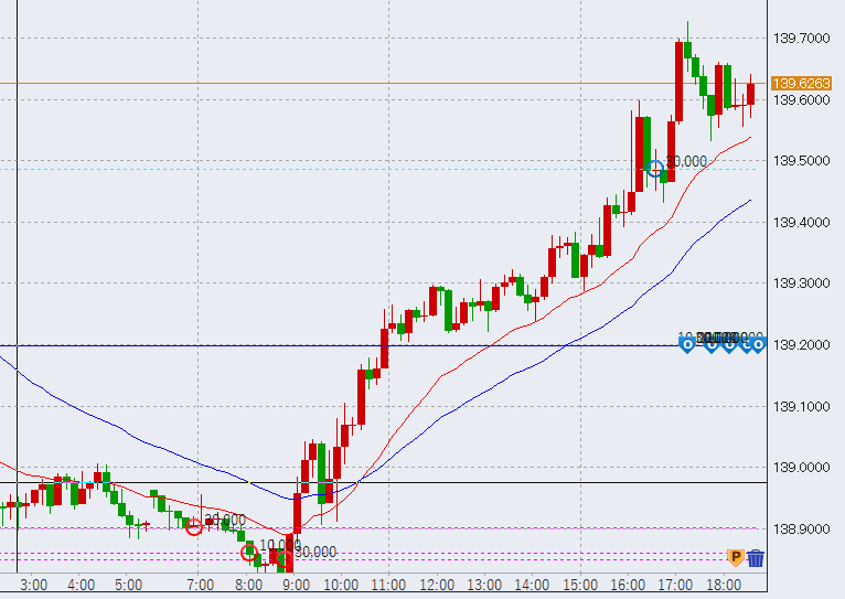 11時前さらに上昇していきます。一旦の目処は前日の下落幅の50%ラインとなる139.35付近です。