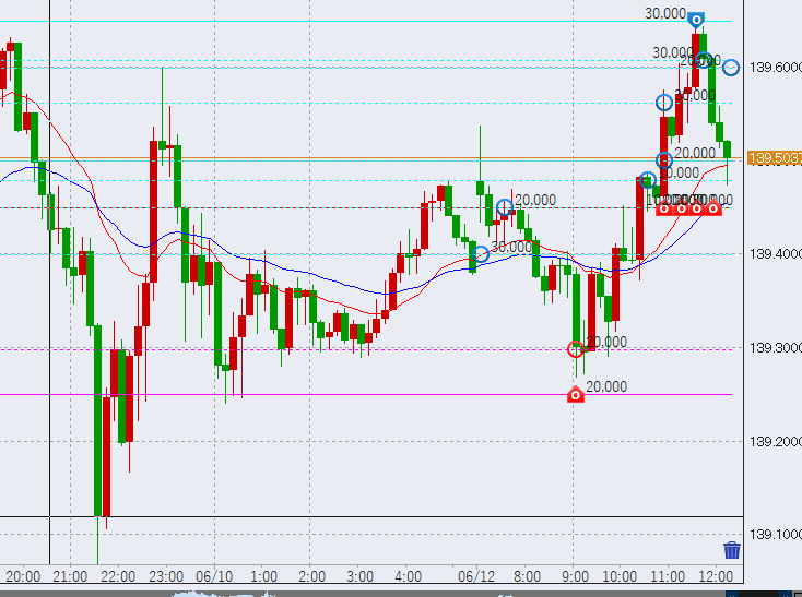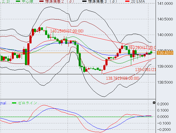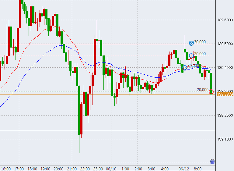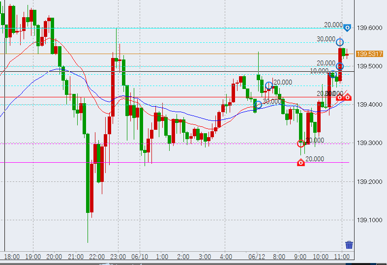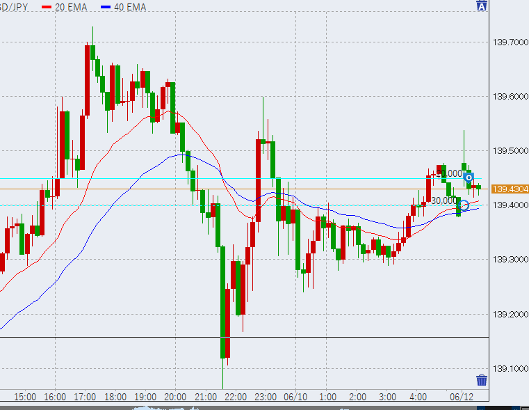 9時過ぎやや下落。今日は狭い範囲でのレンジになると予想しており、139.3付近で2万買い。