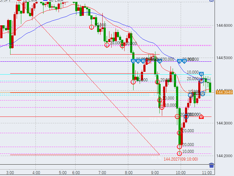 11時頃。今日ははじめに売りを入れておらず、反発後の売りスタートです。ちょっと苦しい状況ですが、今後のさらなる反発を期待。