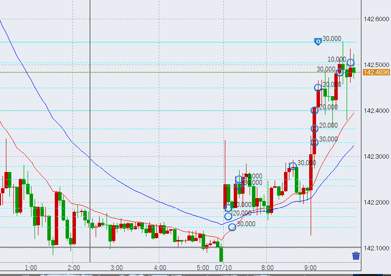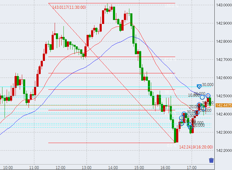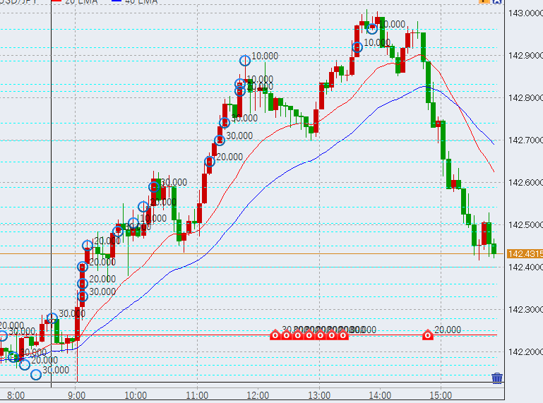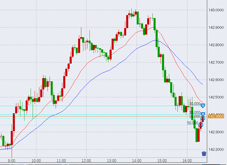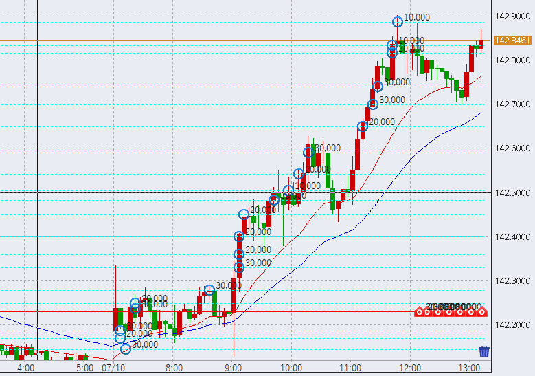 13時過ぎ142.9円付近まで上昇。反発強めです。