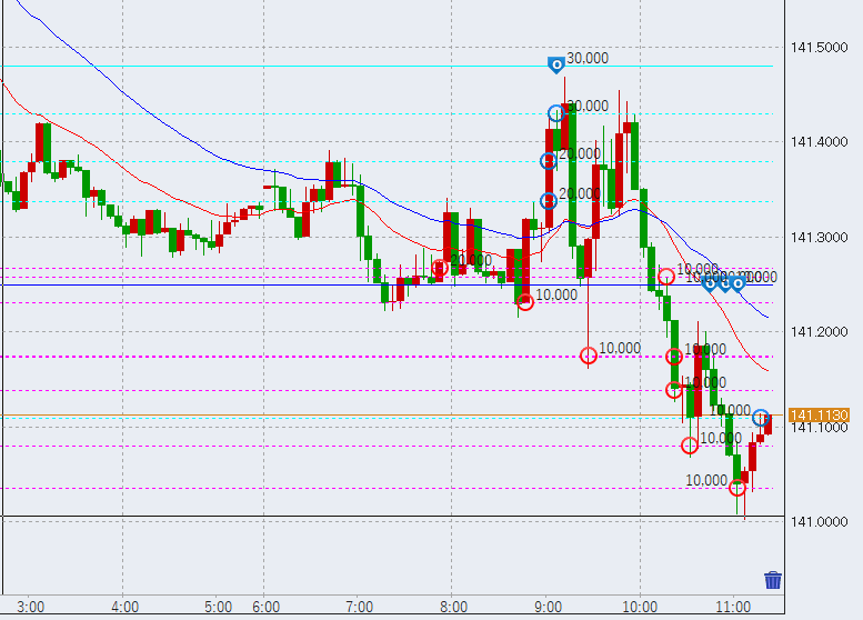 11時過ぎ141円付近まで低下。そろそろ反発してきそうですがどうでしょうか。上げればまた売り浴びせです。