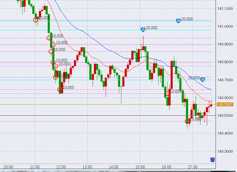 17時過ぎ140.5を付ける。なかなか上がってきません。本日は売りで稼ごうと思っていましたが、上がらないため微益(+1万円程度)です。