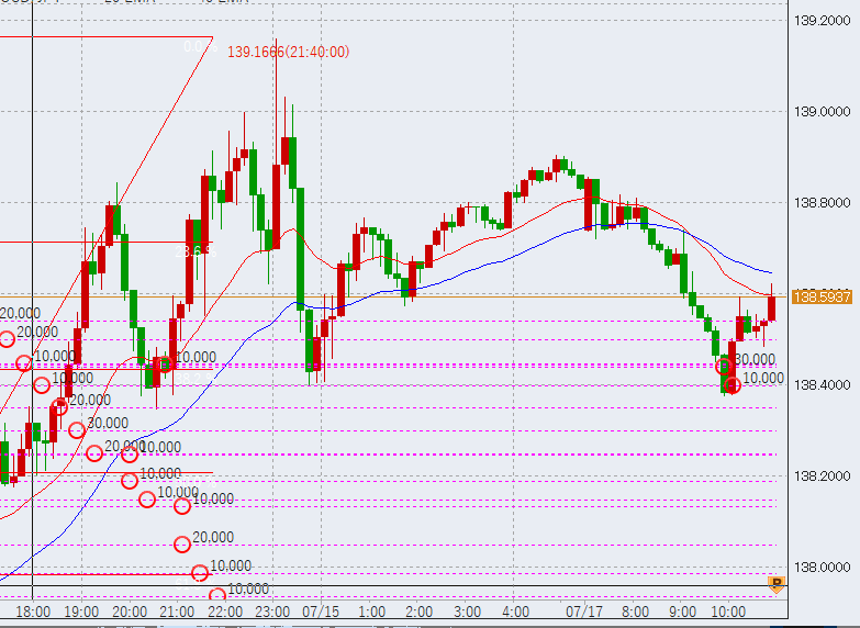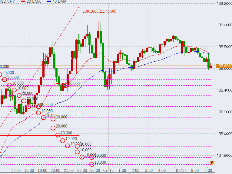 17時反発し、日本時間高値を超える。この後139円を付けるかどうかに注目しています。