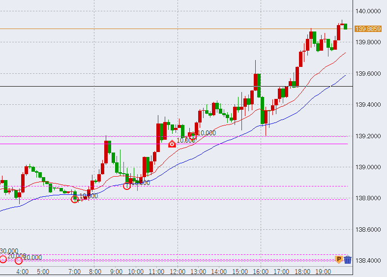 15時過ぎ139.4をマーク。高値に並びました。この後欧州時間でさらに伸びるかに注目です。