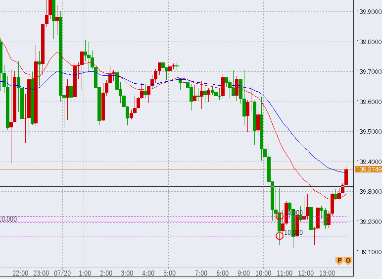 18時過ぎ低調。139.4付近までダレてきました。