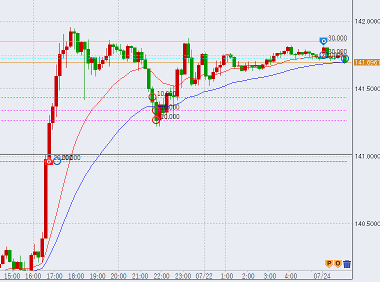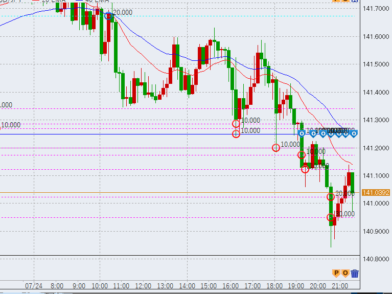 まずは高値に5万売り。現状買いは40万。上昇相場のため、売りは半分の20万程度に設定するつもりです。FOMCまでの見通し高値は142円前半と見ていますが、このままダラダラと下げていく可能性もあります。