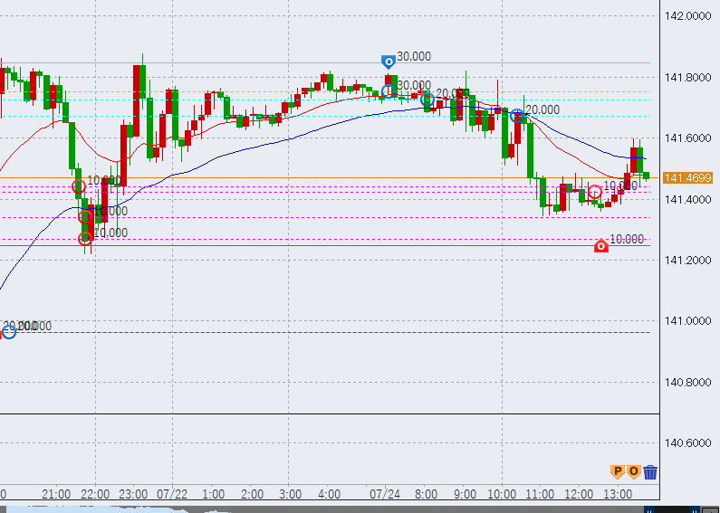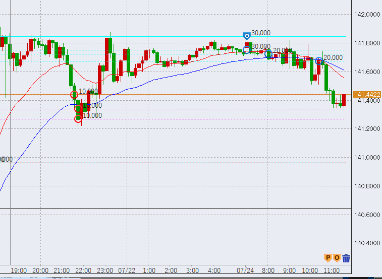 10時過ぎ下げるも底堅い。このまま142円を付けるでしょうか?