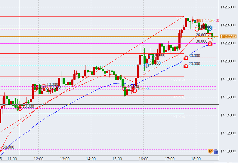 18時過ぎ142.5を付けました。このまま143円くらいまで突っ走りそうですが、どうでしょうか。